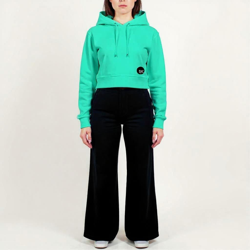 Stay cozy and stylish with the ETC Crop Hoodie, crafted from soft 95% cotton French Terry blended with 5% spandex for a comfy stretch. This cute crop hoodie comes in multiple colors, featuring the playful ETC script on the arm and a small ETC dot on the front—perfect for adding a fun, casual vibe to any outfit.