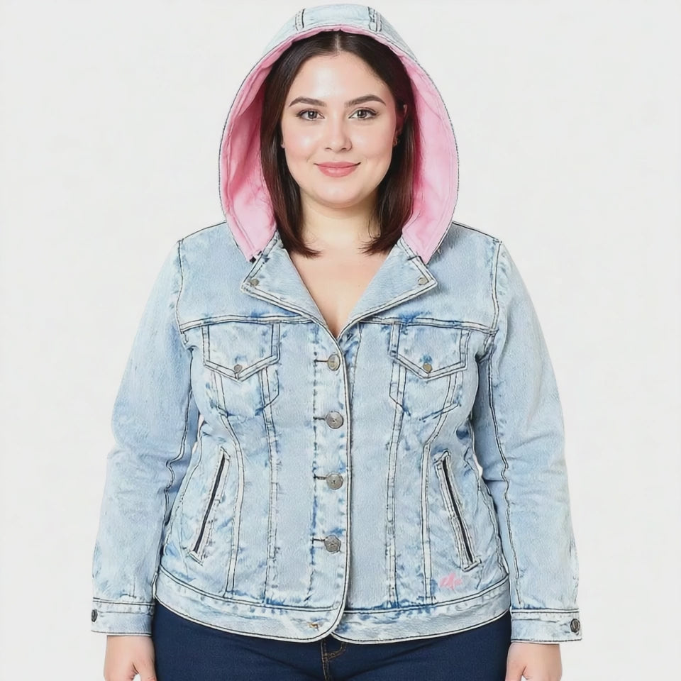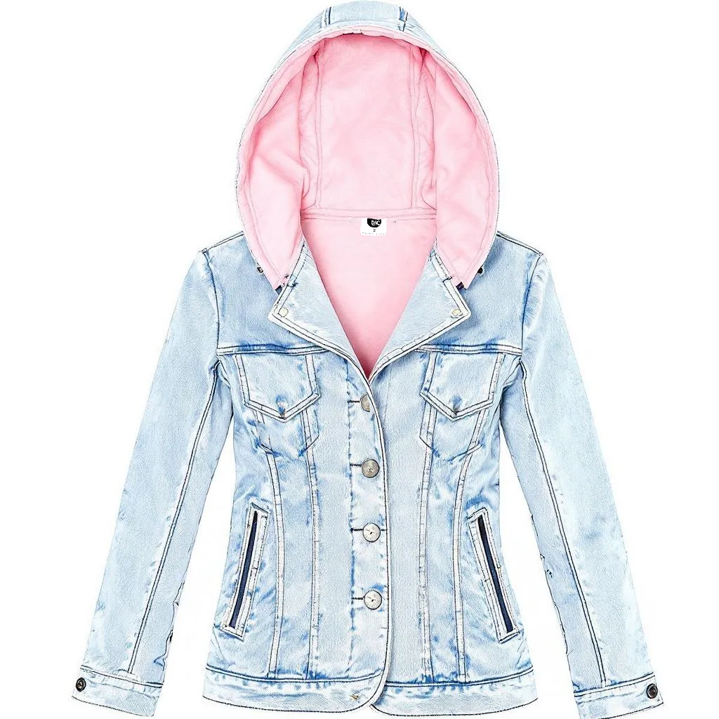 This playful blue stretch denim jacket from Etc features a charming pink hood that adds a pop of fun to your outfit. Designed with handy side pockets, it combines style and practicality for everyday adventures. Perfect for layering, it offers a comfortable fit that moves with you.